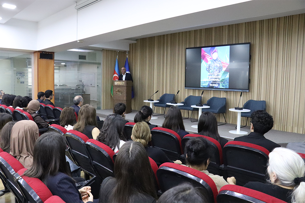 Azərbaycan Universitetində Siyasi və ictimai elmlər kafedrası və Tələbə Gənclər Təşkilatının (TGT) birgə təşkilatçılığı ilə Aprel döyüşlərinin 10-cu ildönümünə həsr olunmuş tədbir keçirilib. Tədbir Dövlət Himninin səsləndirilməsi ilə başlayıb, şəhidlərin xatirəsi bir dəqiqəlik sükutla yad edilib.