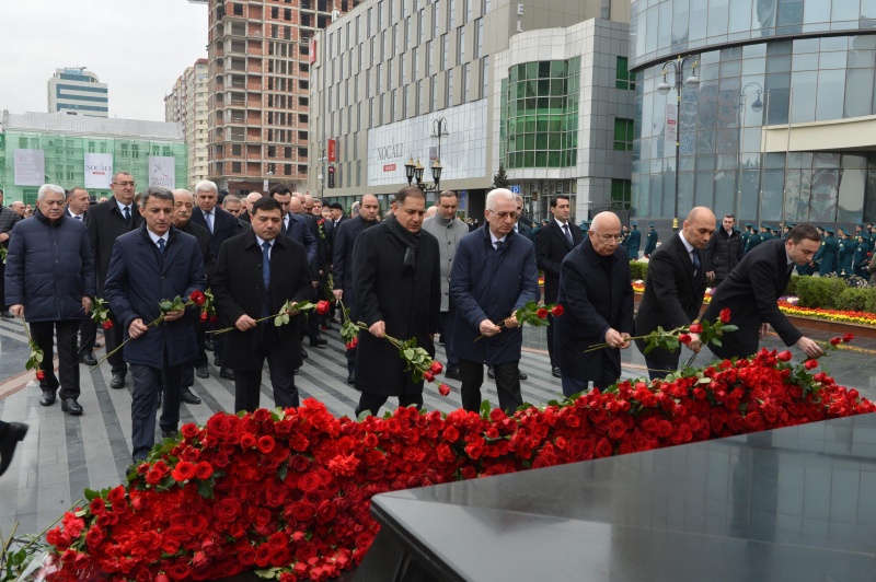 Milli Məclisin kollektivi Xocalı soyqırımı qurbanlarının əziz xatirəsini dərin ehtiramla yad edib, abidənin önünə gül dəstələri düzüb.