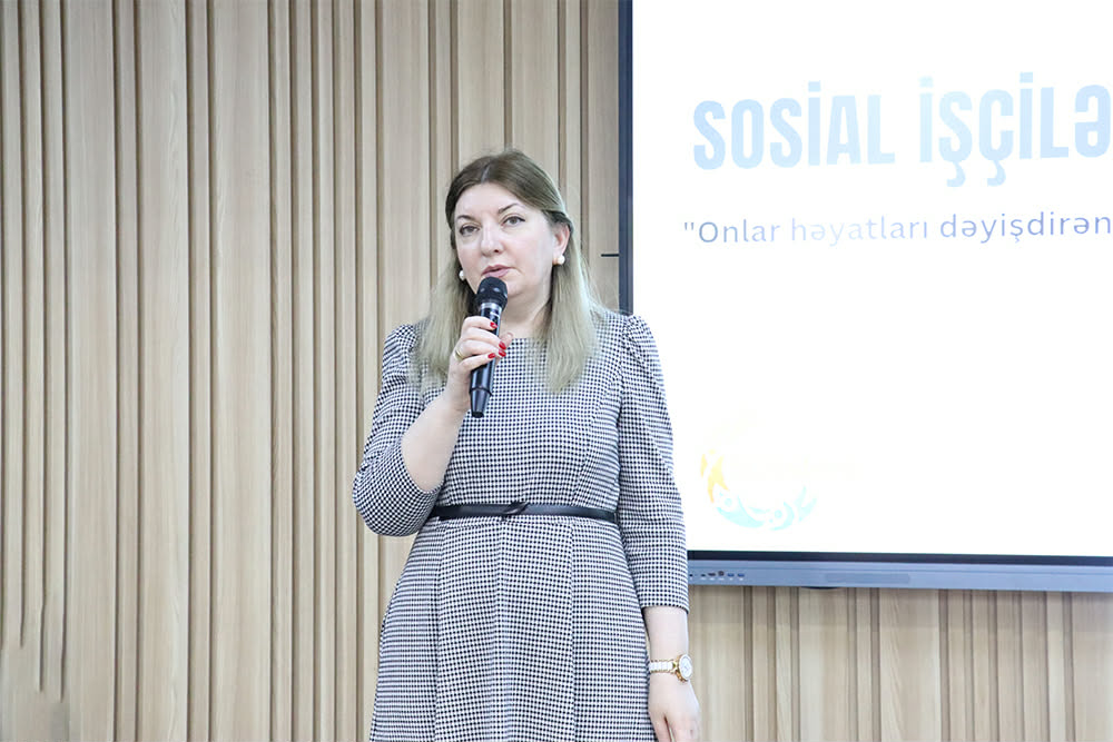 Sosial iş ixtisası üzrə təhsil alan I kurs tələbələrinin iştirak etdiyi “Sosial iş - Sosial rifah” adlı tədbiri giriş sözü ilə agentliyin Səyyar və yarımstasionar sosial xidmətlərin təşkili departamentinin aparıcı mütəxəssisi Ləman Bayramlı açıb. Günün tarixi və mahiyyəti haqqında məlumat verən qonaq qeyd edib ki, Sosial İşçilərin Beynəlxalq Federasiyası 1983-cü ildə hər il mart ayının üçüncü çərşənbə axşamını Dünya Sosial İş Günü kimi elan edib. Bu günün qeyd olunmasında əsas məqsəd sosial işçilərin cəmiyyətin inkişafına verdiyi töhfələri vurğulamaqdır. Hər il qlobal gündəliyin mövzularından birinə həsr olunan Dünya Sosial İş Günü bu il “Ümid və harmoniyanın birgə qurulması: bölünmüş cəmiyyəti birləşdirmək üçün “Harambi Çağırışı” şüarı altında qeyd olunur. “Harambi” ifadəsi Keniya Respublikasının milli dili olan suahili dilində “Hamı birləşsin”, “Hamımız birlikdə işləyək” kimi mənaları ifadə edir.