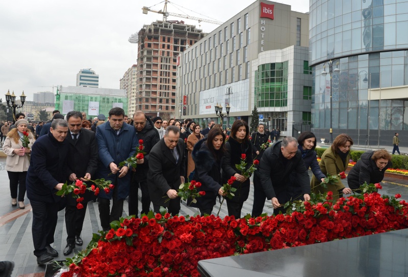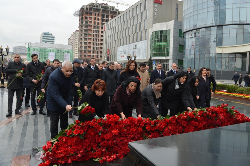 Milli Məclisin kollektivi Xocalı soyqırımı qurbanlarının əziz xatirəsini dərin ehtiramla yad edib, abidənin önünə gül dəstələri düzüb.