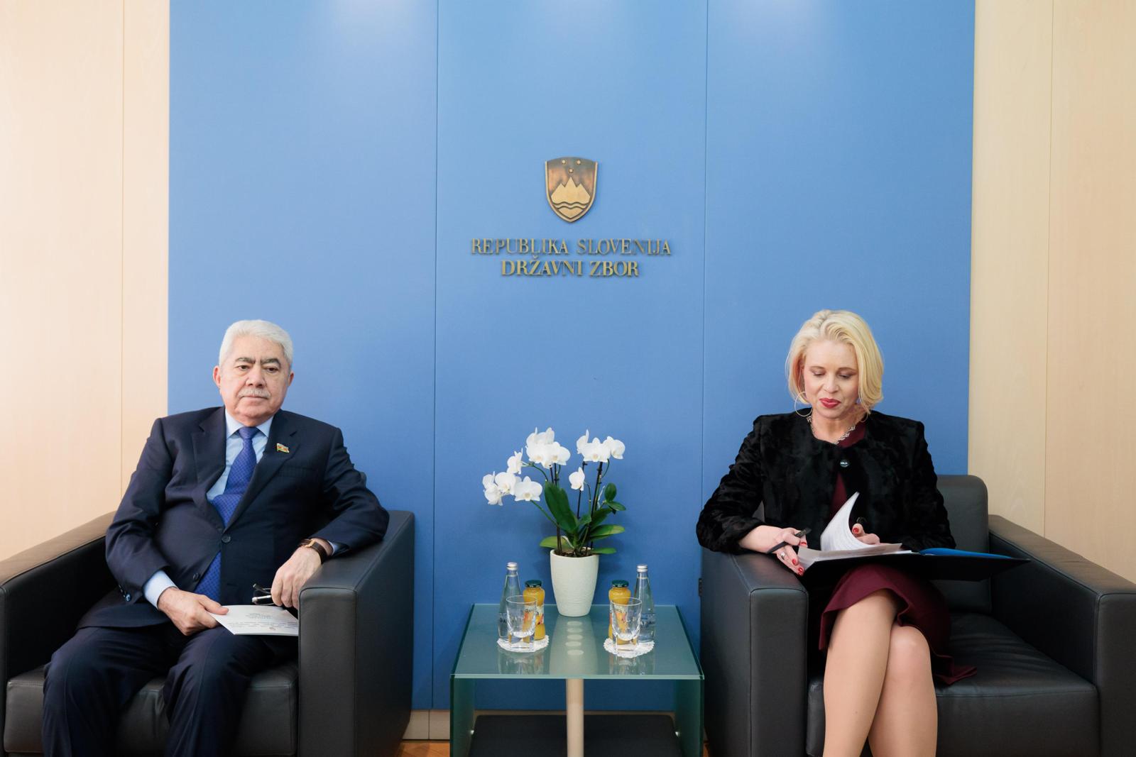 Səfər çərçivəsində Milli Məclisin üzvlərinin Sloveniya Milli Assambleyasının Prezidenti Urşka Klakoçar Zupançiç, Baş nazirin müavini - xarici işlər naziri Tanya Fayon, Milli Assambleyanın Xarici siyasət komitəsinin sədr müavini Duran Stoyanoviç, Sloveniya-Azərbaycan parlamentlərarası dostluq qrupunun rəhbəri Boyan Çebela ilə görüşləri keçirilib.